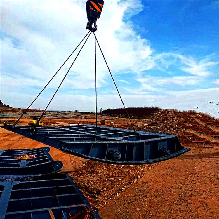 潛孔式鋼閘門結構特點:有頂止水,頂止水與門楣接觸,它與側止水、底止水形成封閉的“□”型止水。面板曲率半徑可取門高的1.1~1.2倍。
